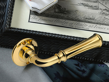 Сдержанная, изысканная ручка для межкомнатных дверей, пронизанная духом итальянской классики. Она идеально впишется в интерьер, оформленный в традиционном стиле. Модель на круглой розетке изготовлена из высококачественной латуни. Предлагается в отделках: Медь не лакированная, Бронза не лакированная. Комплектуется накладкой под ключ.