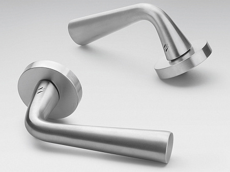 Авторская ручка для межкомнатных дверей от миланского бюро Architettura Laboratorio. На круглой розетке, без декора. Материал изготовления – высококачественное литье. Доступные отделки: Никель, Хром матовый, Золото. Производитель дает десятилетнюю гарантию на покрытие и механизм. Поставляется в комплекте из 2-х ручек, штифта и крепежных винтов.