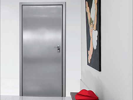 Входная дверь повышенной безопасности с панелью под металл и скрытыми петлями. Модель с защитой от взлома, звуко- и водонепроницаемая. Противопожарная, с повышенной теплоизоляцией. Устанавливается вровень со стеной.