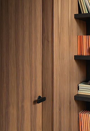 Итальянские двери / Бренды / Lualdi Porte / Boiserie / Элемент буазери с полноразмерной дверью Filo55 в отделке орех каналетто