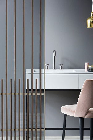 Фрагмент м/к перегородки Koan в интерьере ванной комнаты.