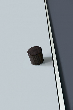 Фрагмент двери L41 c алюминиевым профилем, матовым полотном и оригинальной пофоротной ручкой Pomm.