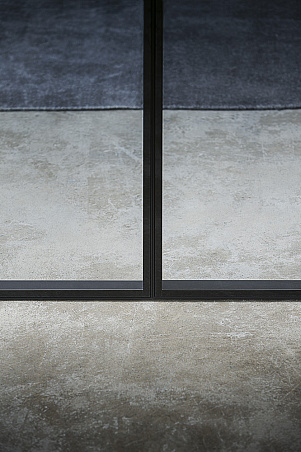 Фрагмент м/к перегородки Shoin, демонстрирующий примыкание створок друг к другу при расположении полотен на однорельсовой направляющей.