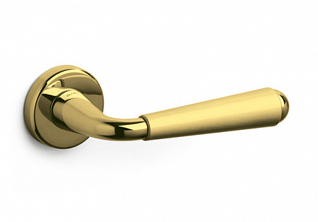Комбинированная нажимная дверная ручка плавной, обтекаемой формы на круглой розетке. Материал изготовления - высококачественная Латунь. Модель разработана собственным исследовательским бюро компании Olivari.