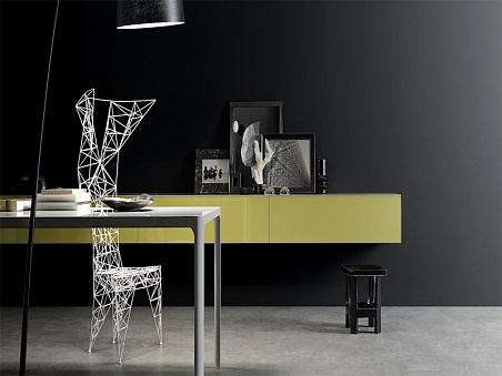 Итальянские двери / Бренды / Rimadesio / Abacus Living / Композиция с подвесными ящиками, из лакированного глянцевого стекла ocra Abacus Living Rimadesio