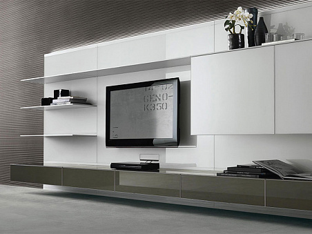Система хранения-алюминий+стекло. Abacus living - это новая концепция системы гостиной. Дизайн включает в себя масштабную панель из лакированного стекла с безупречной поверхностью, которая "играет" отражениями и светом. На панели расположены выполненные целиком из стекла ящики с установленными в одной плоскости раздвижными дверцами , необычайно тонкие полки и витринный блок с подъемными створками. Задние стенки оборудованы светодиодной системой освещения в верхней и нижней секциях. Abacus living предлагает пять типов размеров по ширине и высоте, что позволяет реализовать исключительные возможности всевозможных сочетаний аксессуаров со стеклянными стеновыми панелями . Широкий выбор блоков хранения и аксессуаров для гостиной и зоны Hi-Fi позволяет создавать решения с изысканной стеклянной отделкой, адаптируемые под самые современные тенденции.