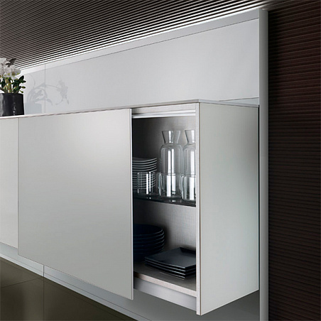 Система хранения-алюминий+стекло. Abacus living - это новая концепция системы гостиной. Дизайн включает в себя масштабную панель из лакированного стекла с безупречной поверхностью, которая "играет" отражениями и светом. На панели расположены выполненные целиком из стекла ящики с установленными в одной плоскости раздвижными дверцами , необычайно тонкие полки и витринный блок с подъемными створками. Задние стенки оборудованы светодиодной системой освещения в верхней и нижней секциях. Abacus living предлагает пять типов размеров по ширине и высоте, что позволяет реализовать исключительные возможности всевозможных сочетаний аксессуаров со стеклянными стеновыми панелями . Широкий выбор блоков хранения и аксессуаров для гостиной и зоны Hi-Fi позволяет создавать решения с изысканной стеклянной отделкой, адаптируемые под самые современные тенденции.