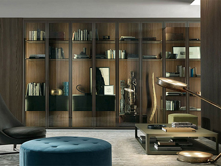 Система хранения с коричневой алюминиевой структурой и стеклянными створками Cover Rimadesio