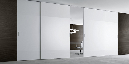 Алюминиевая рама и глянцевое лакированное стекло bianco latte. Эстетическая эволюция системы Graphis развивается в сторону кажущегося упрощения базового дизайна. Так рождается Graphis plus, где панели выполнены из лакированного стекла и несущего алюминиевого профиля минимальной толщины. Чистота цветного стекла подчеркивается большой площадью его поверхности и традиционными строгими геометрическими формами. Также нельзя не отметить хорошую звукоизоляцию перегородки Graphis plus, достигаемую за счет звукоизолирующего материала между стекол. Настоящей дизайнерской находкой стали утопленные металлические ручки со вставками из лакированного стекла в тон панели.