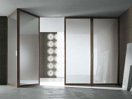 Межкомнатная перегородка с коричневой алюминиевой рамой и стеклом Siparium Rimadesio folding panels