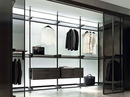 Стекло – любимый материал Rimadesio. Его можно окрашивать в различные цвета (кстати, для этого на фабрике применяются красители только на водной основе), использовать различные отделки (у бренда в арсенале их более 60-ти, как прозрачных, так и светонепроницаемых), а в сочетании с алюминием стекло позволяет реализовывать прочные и не громоздкие конструкции, очень простые в эксплуатации. Кроме стекла и алюминия на предприятии так же используется натуральная кожа и дерево.